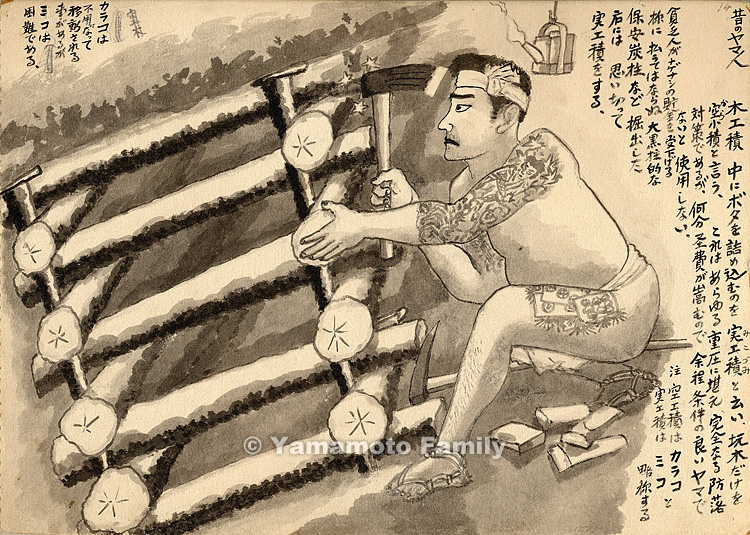 [Pit Workers in the Old Days #14: Wood Cribbing (Collapse Prevention Method by Timbering)]