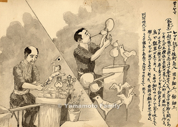 These craftsmen sold their work at 1 sen (0.01 yen) a piece to the delight of children.