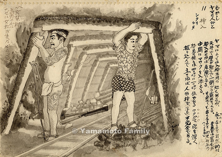 [People at Coal Pits in the Old Days #11: Repairers; Timbering the Roof]