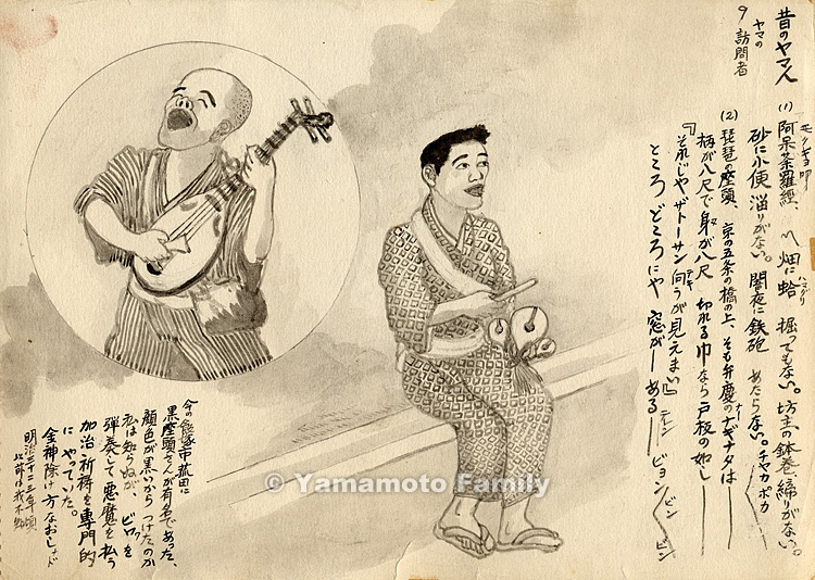 I don't know if he was called like this because he had a dark (kuro) face. He professionally played the biwa and performed incantations to exorcize demons and taught how to gain refuge from the anger of the god of directions called Konjin. It was around 1899 or 1900 that I heard about him and I do not know what he had done before then.