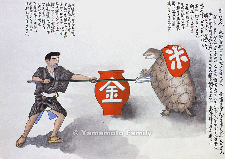 Lettering on the Bag Shouldered by the Tortoise (game in dialect/normally kame)