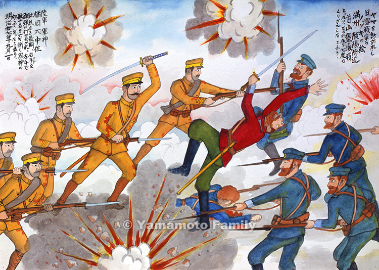 A Picture of the Russo-Japanese War in the Show Box Brought to the Pit: The Fierce Battle at the Fort of Shoushanbao near Liaoyang, Manchuria (Japanese Army War Hero, Lieutenant Coronel Shuta Tachibana)