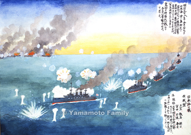 On May 27, 1905, near Okinoshima Island, the Imperial Japanese Navy intercepted the Russian 2nd and 3rd Pacific Fleets (called the Baltic Fleet in Japan). The fleet admiral of the Imperial Japanese Navy was Heihachiro Togo and the admiral of the Russian fleets was Zinovy Rozhestvensky.
