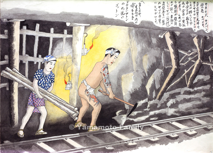 Pits which had slopes with hard shale roofs were safe and no frames were necessary while miners were mining new deposits (aratoko). However, each pit was wholly threatened by rock pressure after a few years. Swelling of bottoms (ban bukure) and wall collapses occurred under excessive rock pressure. Repairers had to busily cut bottoms (kujirisage/ban uchi) under railway tracks and fence to prevent collapses of walls on the elevated sides. The financial condition of the pit (yama) became worse.