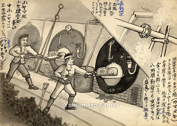 二、三年後には二本ジューローが登場した。二号炭を焚き、坑内の洩蒸気が余りにも夥しいので 当時の火夫は八時間勤務でも重働であった。盛夏でも裸では猶暑い。