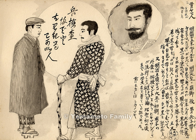 それ以前は黒色の帯など予想もせず。若し黒の帯をしておれば狂人と見做されたであろう。且又、現今白色の帯をしておれば、皆あとふりむいて指をさすであろう(面白い白と黒が記念化した。)。