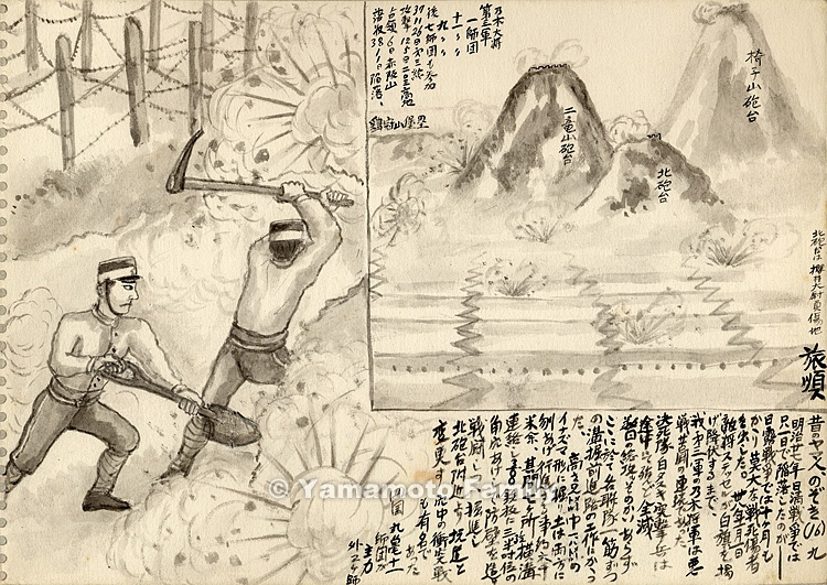 日露戦争では十ヶ月もかかり莫大な戦死傷者を出した。丗八年一月一日敵将ステッセルが白旗を揚げ降伏するまで、我第三軍の乃木将軍は悪戦苦闘の連続であった