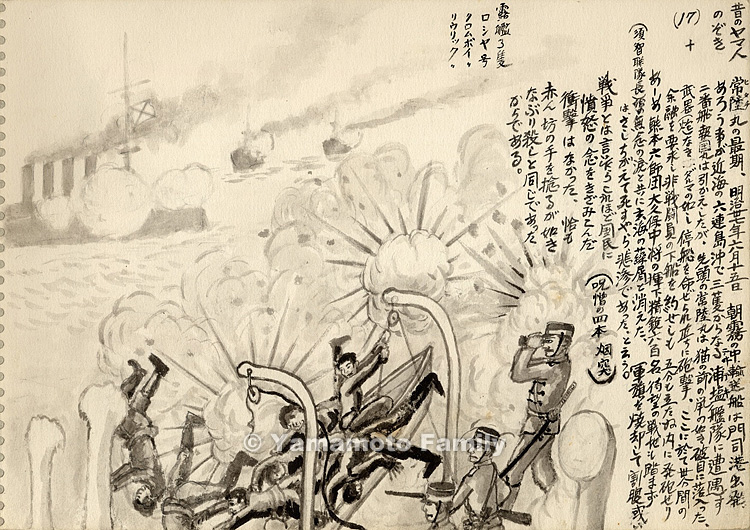 武器(炮)なきダルマの如し停船を命ぜられ直ちに砲撃。ここに於て丗分間の余融を要求し非戦闘員の下船を約せしも五分も立たぬ内に発砲せり