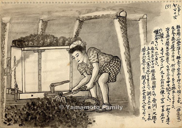 むかしヤマの女(9)(カブ出し - 函を待つ間にエブに石炭を入れる女)