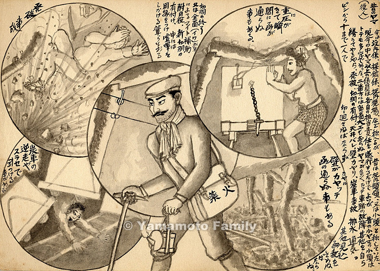 今は坑内係、採鉱係、坑内現場など称えるが、昔は坑内頭領、又は小頭と称していた。現今の中ヤマ以上の係員は各自の担当責任を遂行するだけでよいが、昔の小ヤマの小頭はトテモ多忙であった。二番方には当番大工もおらぬヤマが多く、ヨッテ車路の故障其他を自ら繕うてやるやら、発破、切羽の有付、天井バレ、壁カヤリ、炭車事故、排水、通気。ピンから十まで一人で切り廻さねばならず、其他、見込函数をきめねばならぬ。