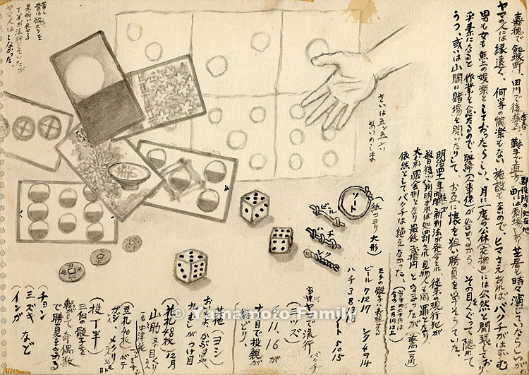昔(昔し)は骰子2ヶを茶碗に伏せる丁半が流行していたが ヤマ人はしなかった。