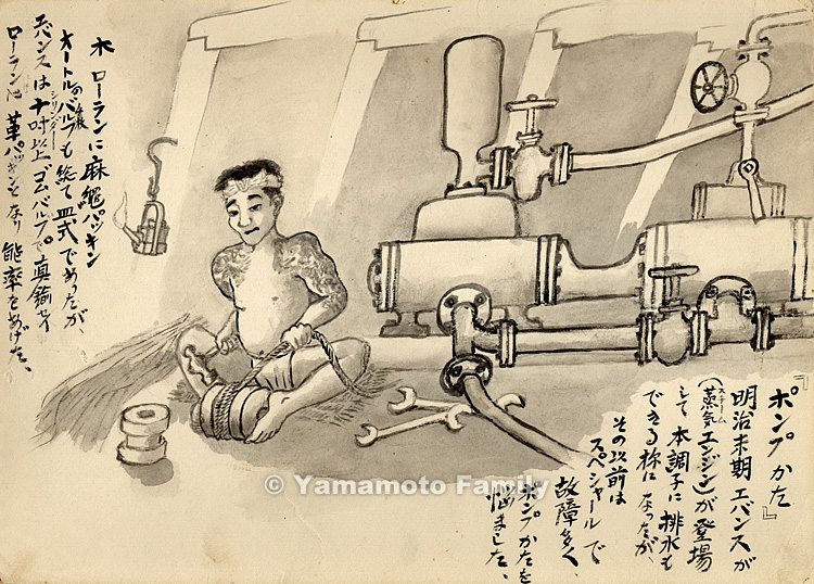 明治末期 エバンスが(蒸気(スチーム)エンジン)が登場して 本調子に排水もできる様になったが、その以前はスペシャールで故障多く、ポンプかたを悩ました。